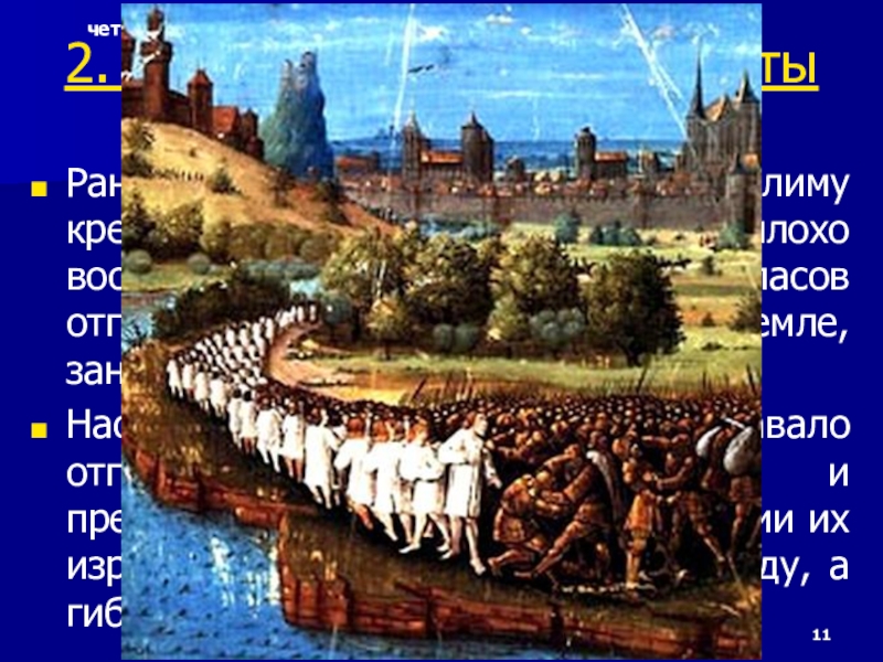 Слайд 10Главную силу крестовых походов составили рыцари. В XI в. в Западной