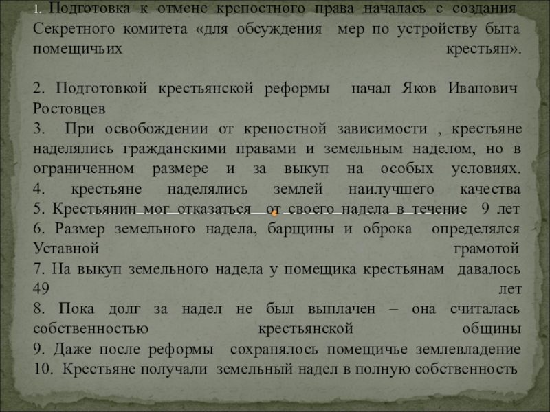 2. Подготовкой крестьянской реформы начал Яков Иванович Ростовцев