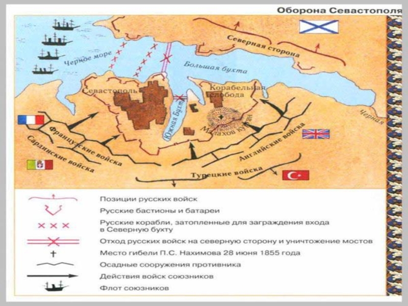 Адмирал П.Нахимов во главе эскадры из 8 кораблей напал на Османский флот и во время 4-х ч сражения сжёг почти все Османские суда.
