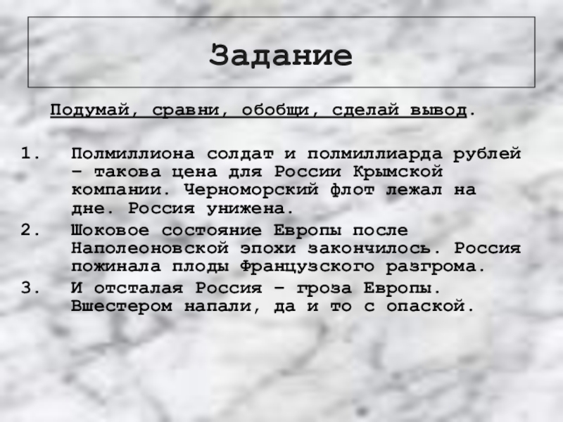Это сайт презентаций, где можно хранить и обмениваться своими презентациями, докладами, проектами, шаблонами в формате PowerPoint с другими пользователями. Мы помогаем школьникам, студентам, учителям, преподавателям хранить и обмениваться учебными материалами.
