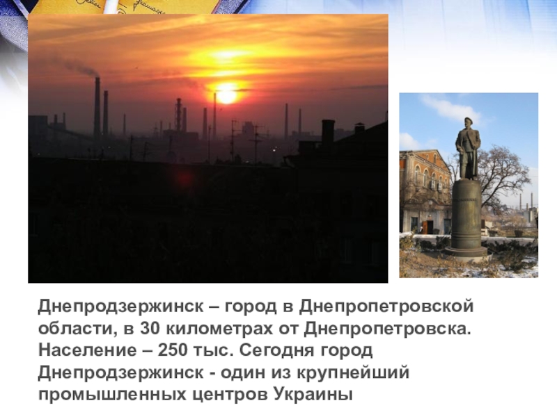 Население – 250 тыс. Сегодня город Днепродзержинск - один из крупнейший промышленных центров Украины