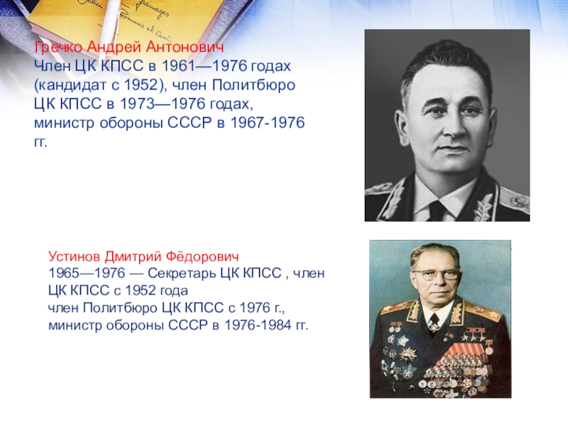 член Политбюро ЦК КПСС в 1973—1976 годах, министр обороны СССР в 1967-1976 гг.