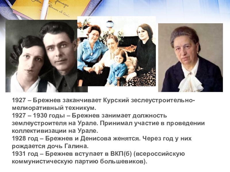 1928 год – Брежнев и Денисова женятся. Через год у них рождается дочь Галина.