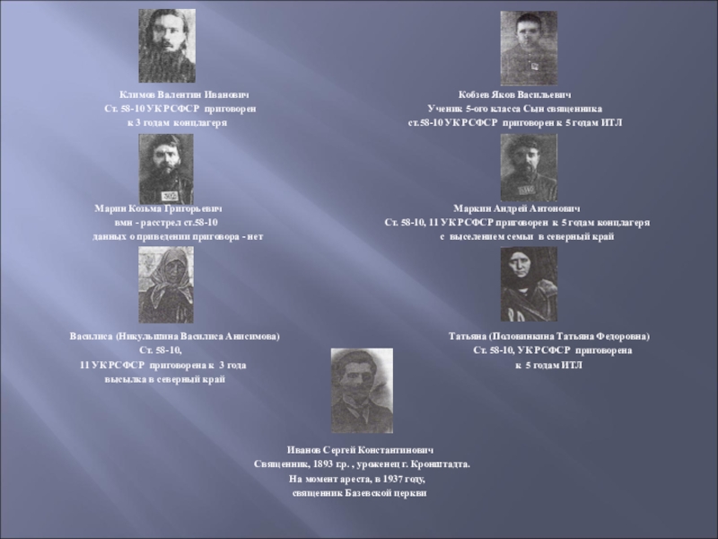 Ст. 58-10 УК РСФСР приговорен Ученик 5-ого класса Сын священника