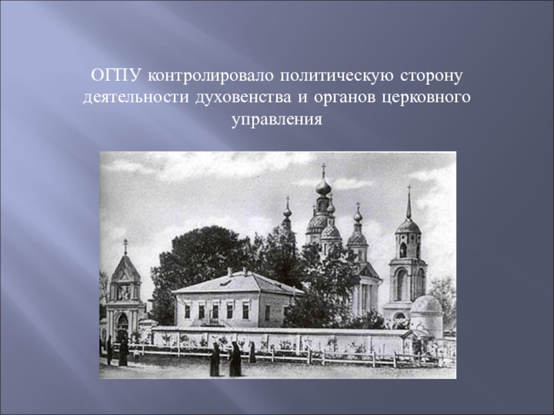 Слайд 3ОГПУ контролировало политическую сторону деятельности духовенства и органов церковного управления