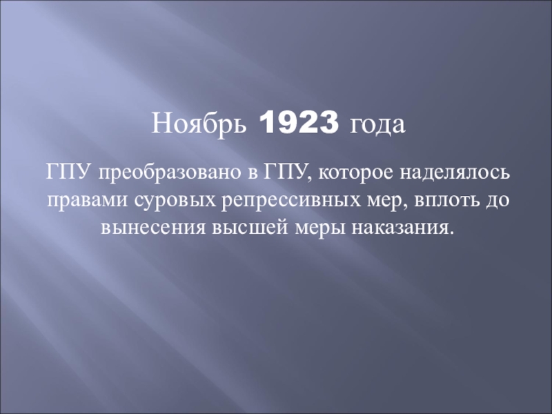 ГПУ преобразовано в ГПУ, которое наделялось правами суровых репрессивных