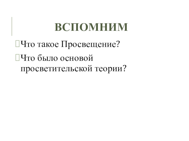 вспомнимЧто такое Просвещение?Что было основой просветительской теории?