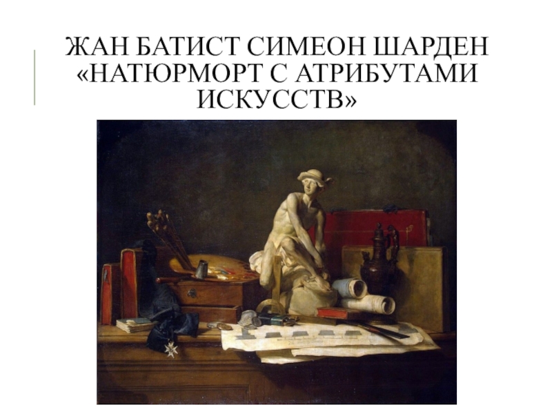 Слайд 10Жан Батист Симеон Шарден «Натюрморт с атрибутами искусств»