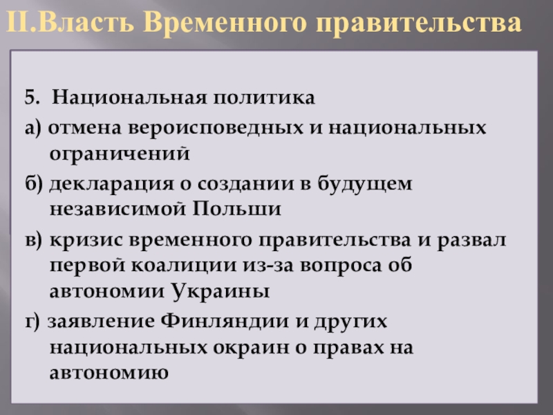 в) кризис временного правительства и развал первой коалиции из-за вопроса об автономии Украины