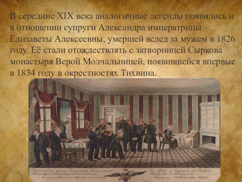 Слайд 12В середине XIX века аналогичные легенды появились и в отношении супруги