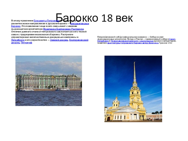 Петропа́вловский собо́р (официальное название — Собор во имя первоверховных апостолов Петра и Павла) — православный собор в Санкт-Петербурге в Петропавловской крепости, усыпальница русских императоров, памятник архитектуры петровского барокко автор Доминико Трезини 1712