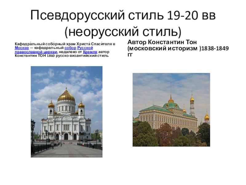 Автор Константин Тон (московский историзм )1838-1849 гг
