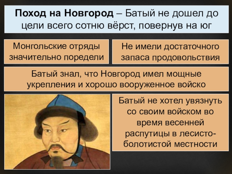 Батый знал, что Новгород имел мощные укрепления и хорошо вооруженное войско