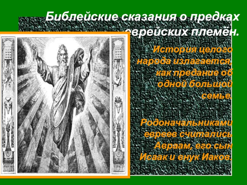 Библейские сказания о предках еврейских племён.История целого народа излагается, как предание об одной большой семье.Родоначальниками евреев считались