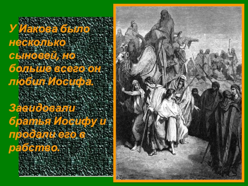 Слайд 13У Иакова было несколько сыновей, но больше всего он любил Иосифа.