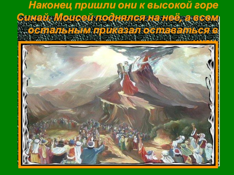 Слайд 18Наконец пришли они к высокой горе Синай. Моисей поднялся на неё,