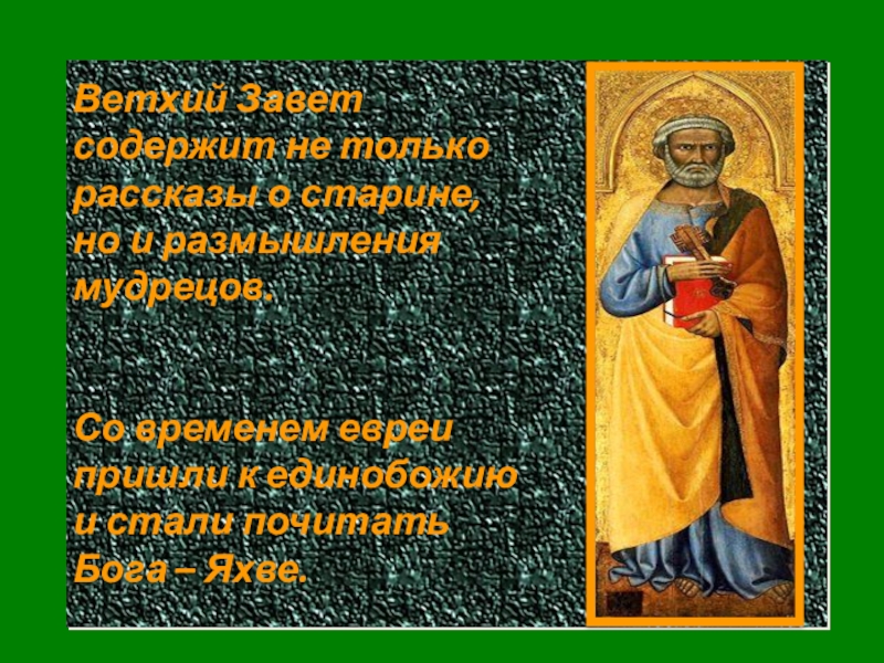 Слайд 6Ветхий Завет содержит не только рассказы о старине, но и размышления