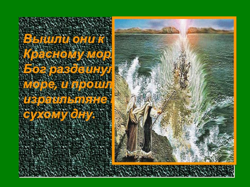 Слайд 17Вышли они к Красному морю. Бог раздвинул море, и прошли израильтяне