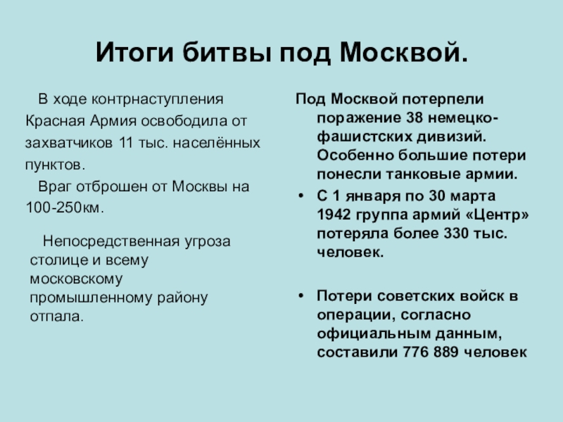 Непосредственная угроза столице и всему московскому промышленному району отпала.