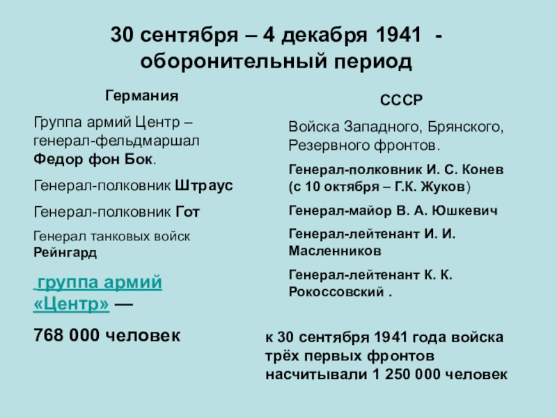 к 30 сентября 1941 года войска трёх первых фронтов насчитывали 1 250 000 человек