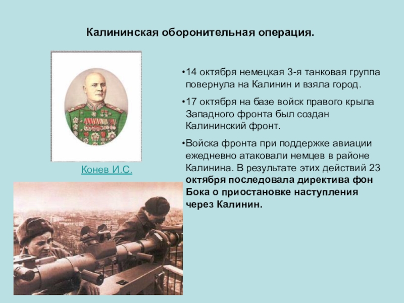 Генерал-полковник И. С. Конев (с 10 октября – Г.К. Жуков)