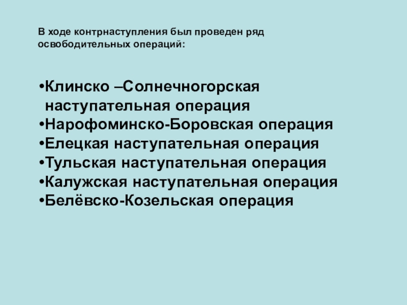 В ходе контрнаступления был проведен ряд освободительных операций: