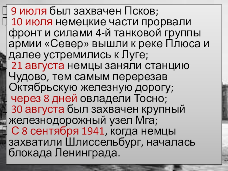 К 27 января 1944 года блокада Ленинграда была полностью снята освобождением Пушкина, Гатчины и Чудово.