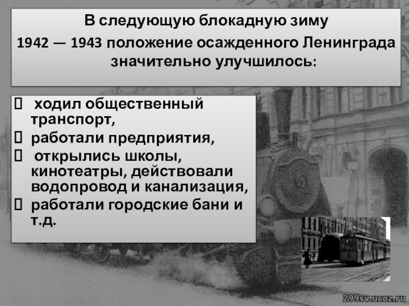 1942 — 1943 положение осажденного Ленинграда значительно улучшилось: