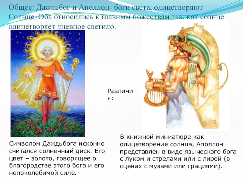 Символом Даждьбога исконно считался солнечный диск. Его цвет – золото, говорящее о благородстве этого бога и его непоколебимой силе.