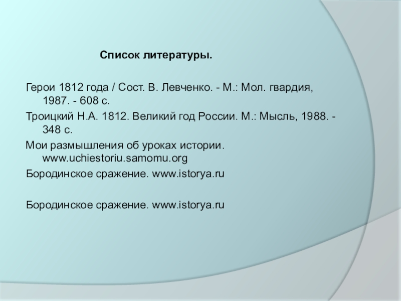 Троицкий Н.А. 1812. Великий год России. М.: Мысль, 1988. - 348 с.