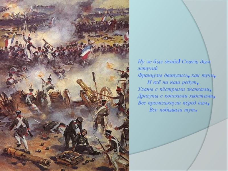 Слайд 11Ну ж был денёк! Сквозь дым летучий