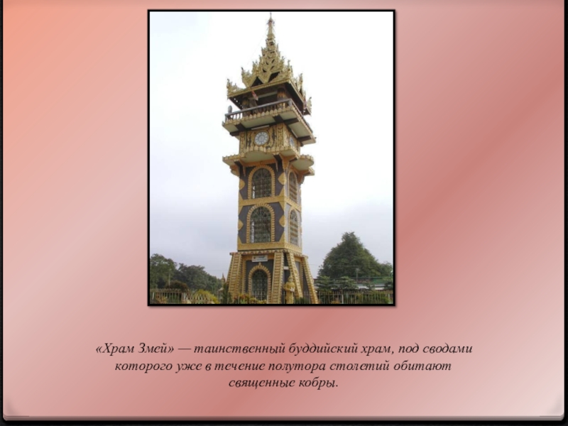 Слайд 11«Храм Змей» — таинственный буддийский храм, под сводами которого уже в