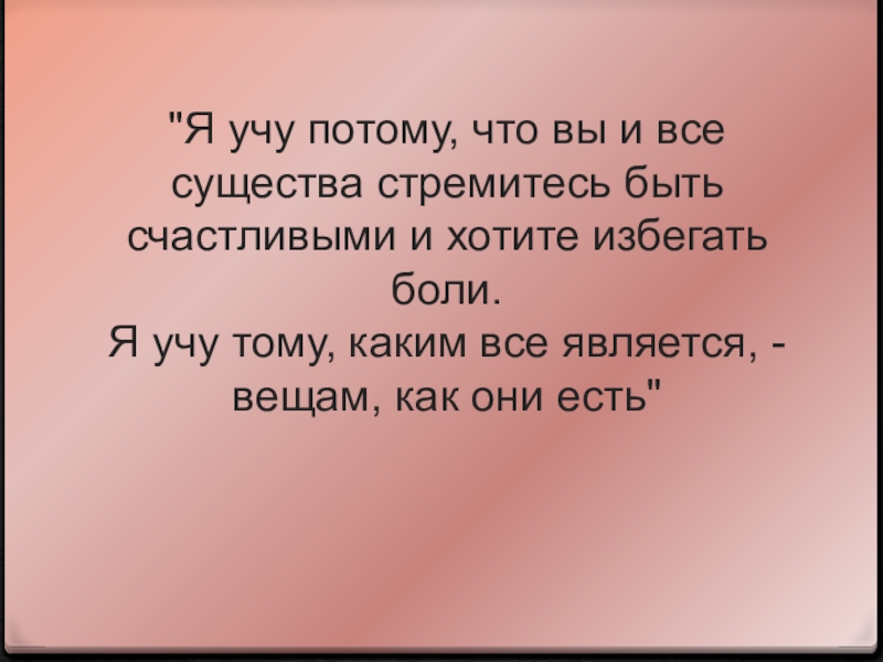Слайд 12"Я учу потому, что вы и все существа стремитесь быть счастливыми