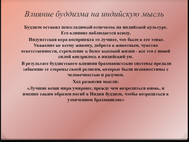 Слайд 8Влияние буддизма на индийскую мысль