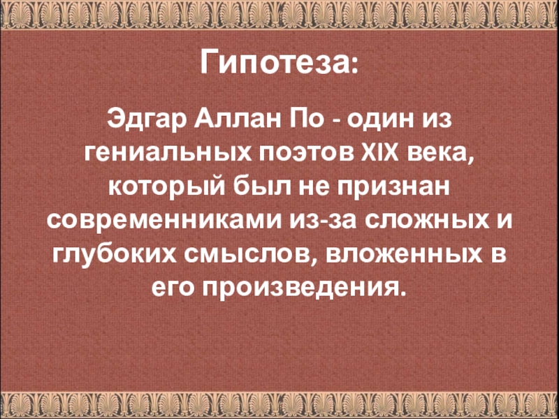 Эдгар Аллан По - один из гениальных поэтов XIX века, который