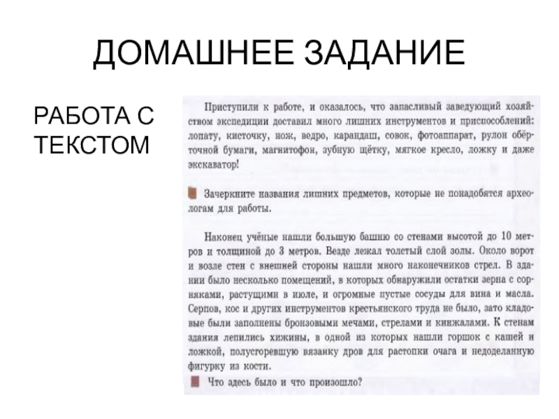 ДОМАШНЕЕ ЗАДАНИЕРАБОТА С ТЕКСТОМ