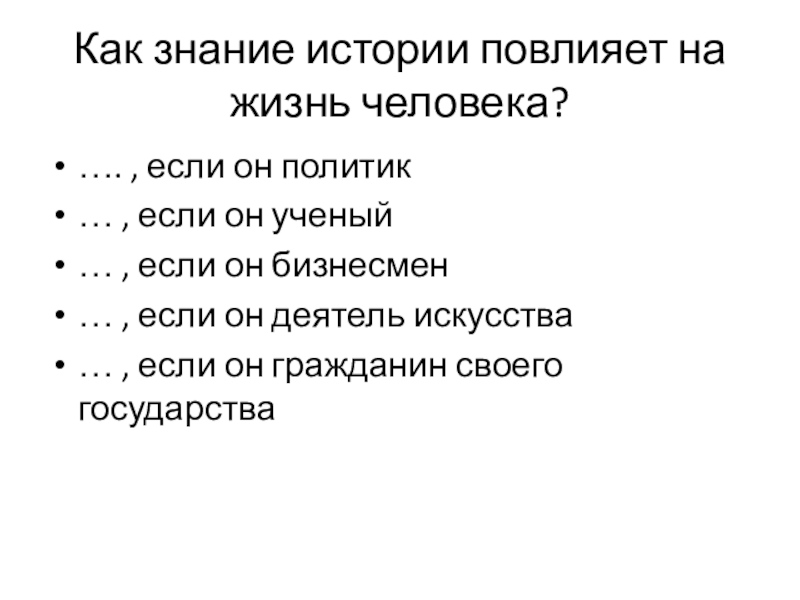Слайд 4Как знание истории повлияет на жизнь человека?