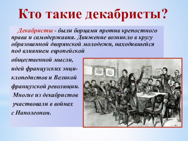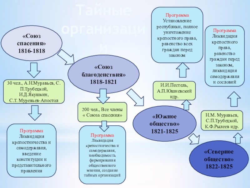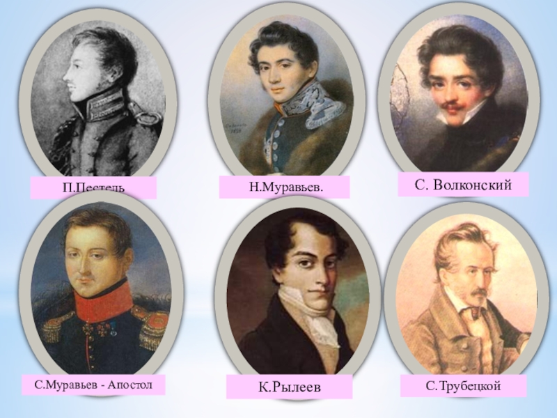 Н.М. Муравьев, С.П.Трубецкой, К.Ф.Рылеев идр.
