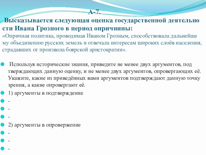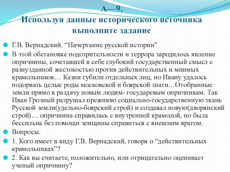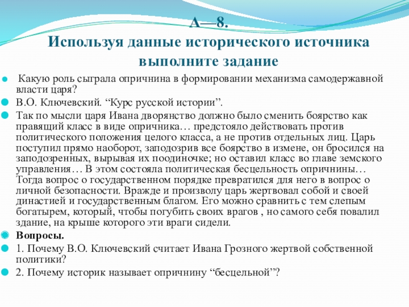 Грозного, ее причин, последствий; повторить, систематизировать, обобщить знания по теме «Опричнина».