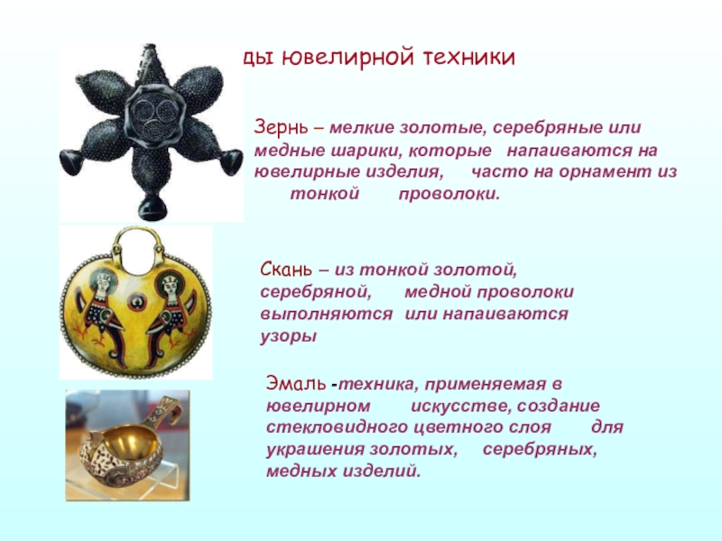 Скань – из тонкой золотой, серебряной, медной проволоки выполняются или напаиваются узоры