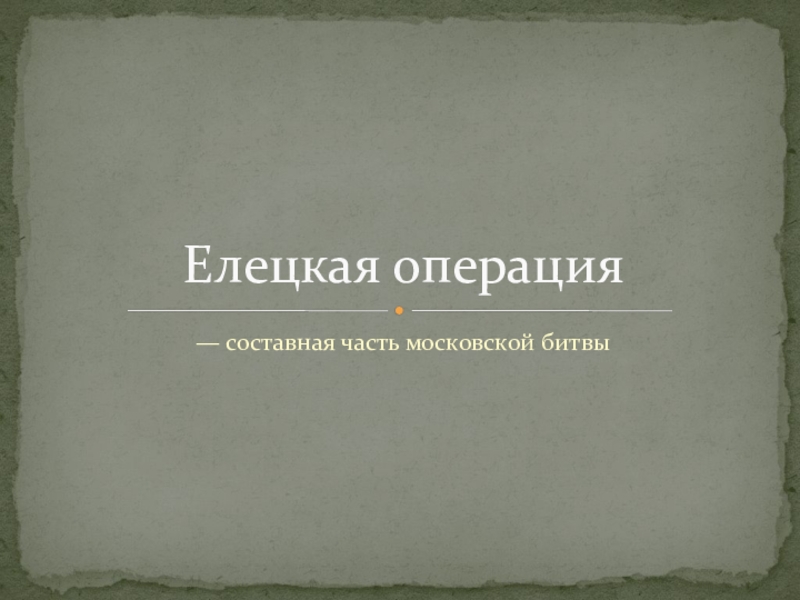Елецкая наступательная операция войск правого крыла Юго-Западного фронта, успешно проведенная 6 - 16 декабря 1941 года в ходе контрнаступления под Москвой, предусматривала уничтожение елецкой группировки противника. Задача была в нанесении двух ударов: главного - фронтовой оперативной группой