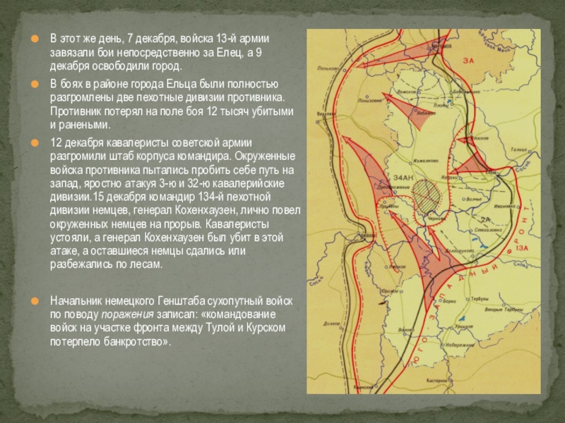 Слайд 6В этот же день, 7 декабря, войска 13-й армии завязали бои