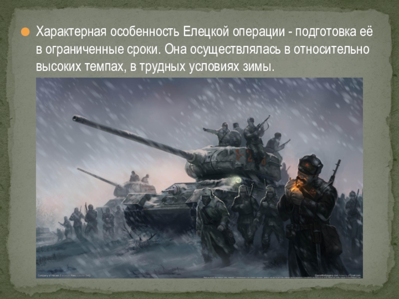 Слайд 4Характерная особенность Елецкой операции - подготовка её в ограниченные сроки. Она