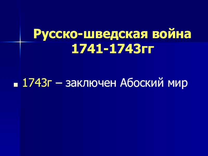 Русско-шведская война 1741-1743гг1743г – заключен Абоский мир