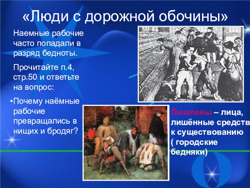Почему наёмные рабочие превращались в нищих и бродяг?