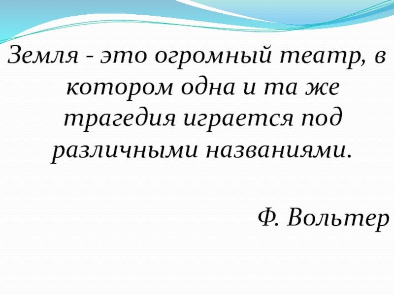 Слайд 2Земля - это огромный театр, в котором одна и та же