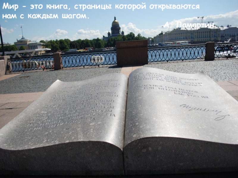 Мир - это книга, страницы которой открываются нам с каждым шагом.А. Ламартин
