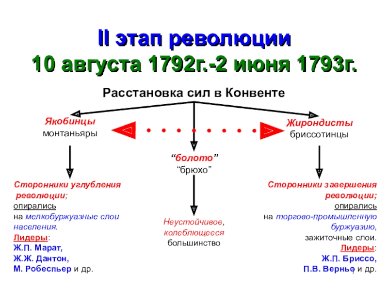 лидеры: Г.Мирабо, А.Барнав, М.Ж.Лафайет