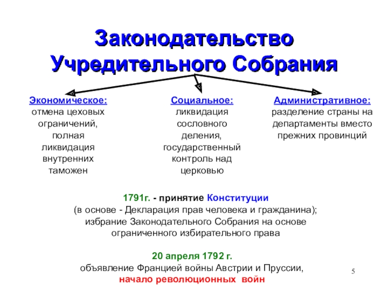 (в основе - Декларация прав человека и гражданина); избрание Законодательного Собрания на основе ограниченного избирательного права