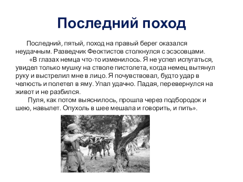 оказался неудачным. Разведчик Феоктистов столкнулся с эсэсовцами.